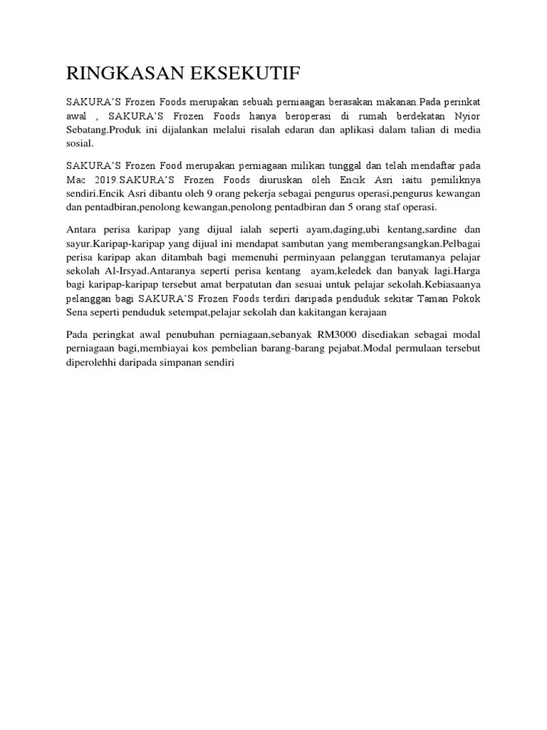 Contoh Latar Belakang Perniagaan Milikan Tunggal - Pdf Rancangan Perniagaan Bakeri Nasuha Sawawi Academia Edu